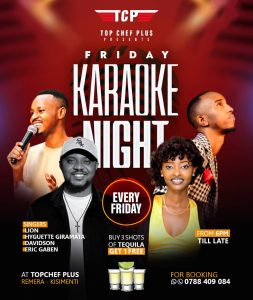 Abari bube muri Remera mwese ndetse mukunda Karaoke ntimuze gutangwa kugera Top Chef Plus iherereye Ku Kisimenti impande neza y’ahahoze Rosty