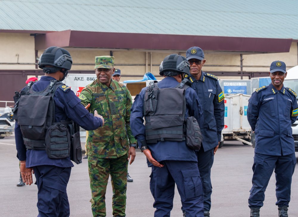 Bahagurutse i Kigali kuri uyu wa Mbere tariki 15 Nzeri 2025. Umugaba w’Ingabo zirwanira ku butaka, Maj Gen Vincent Nyakarundi, ndetse n’Umuyobozi Mukuru wa Polisi y’u Rwanda Wungirije ushinzwe ibikorwa, DIGP Vincent Sano ni bo babahaye ubutumwa mbere yo guhaguruka.