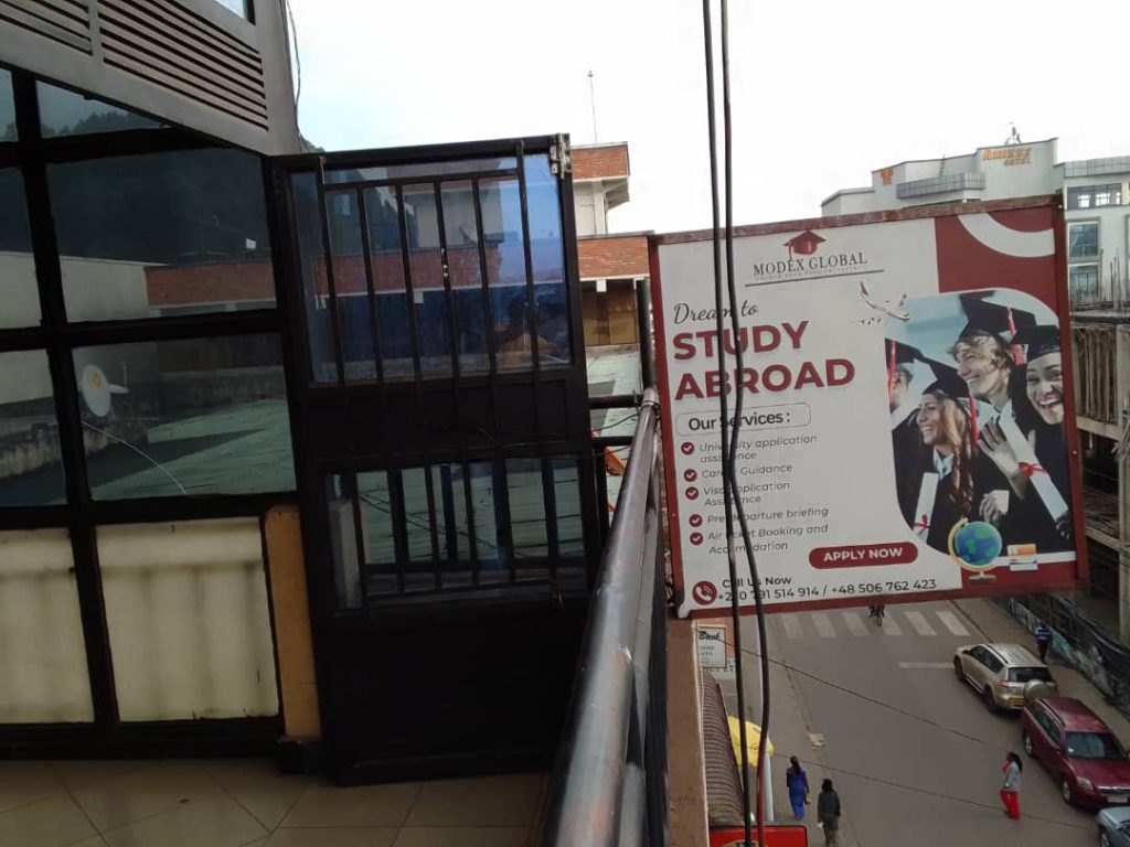 Aho bigira uhabwirwa n’icyapa kinini cyanditseho “STUDY ABROAD”