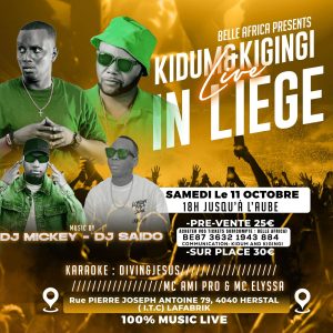 Muri rusanjye twagize ikiganiro kirambuye na Kidum kibido abasha kudutangariza ko yiteguye kuzaririmba Live abakunzi be batuye mu mugi wa Liege bakazabasha kwishimira imiririmbire ye 100% dore iki gitaramo kizabera kuri “Rue Pierre Joseph Antoine 79, 4040 Herstal”.