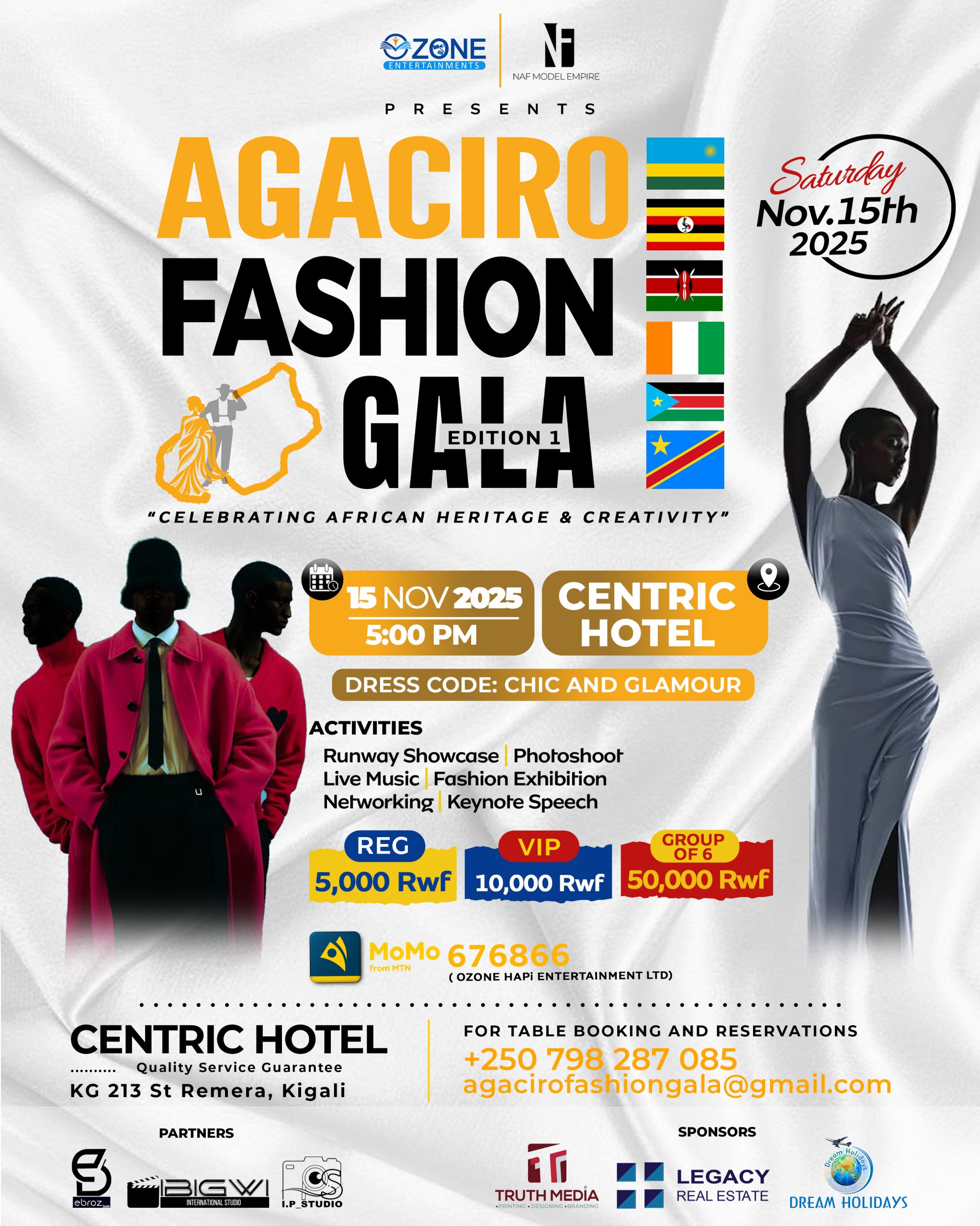 Mu gihe izuba rizaba rirenze ku misozi myiza ya Kigali, hazaba hari ibyishimo n’amatsiko muri Centric Hotel, aho hateganyijwe kuba umugoroba udasanzwe uzahindura isura y’ubuhanzi n’imideli mu Rwanda. Ku itariki ya 15 Ugushyingo 2025, mu birori by’ Agaciro Fashion Gala igitaramo cyiza kizizihiza umurage nyafurika, ubuhanzi, n’agaciro k’umuntu, aho kizatangizwa no guca kw’itapi itukura kuri buri wese uzaba yabyitabiriye