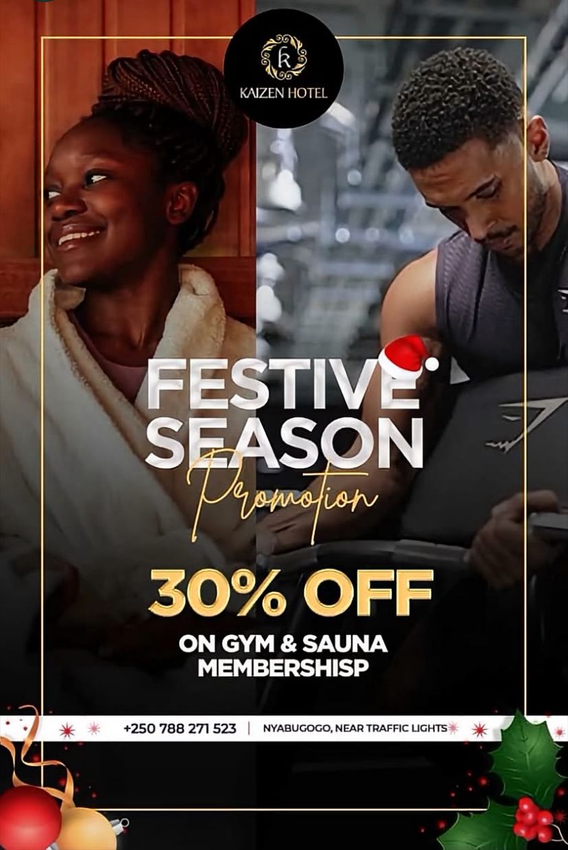Mu kiganiro n’Umuyobozi wa Kaizen Hotel Bwana Alphonse yatangarije KIGALIHIT ko muri iyi minsi abanyarwanda bari mu bihe by’iminsi mikuru y’itangira ry’umwka mushya wa 2026 babashyiriyeho igabanyirizwa rya 30% kuri zimwe muri Serivise zabo harimo Gym ,Sauna Massage ndetse na 20% ku byumba byo kuraramo .