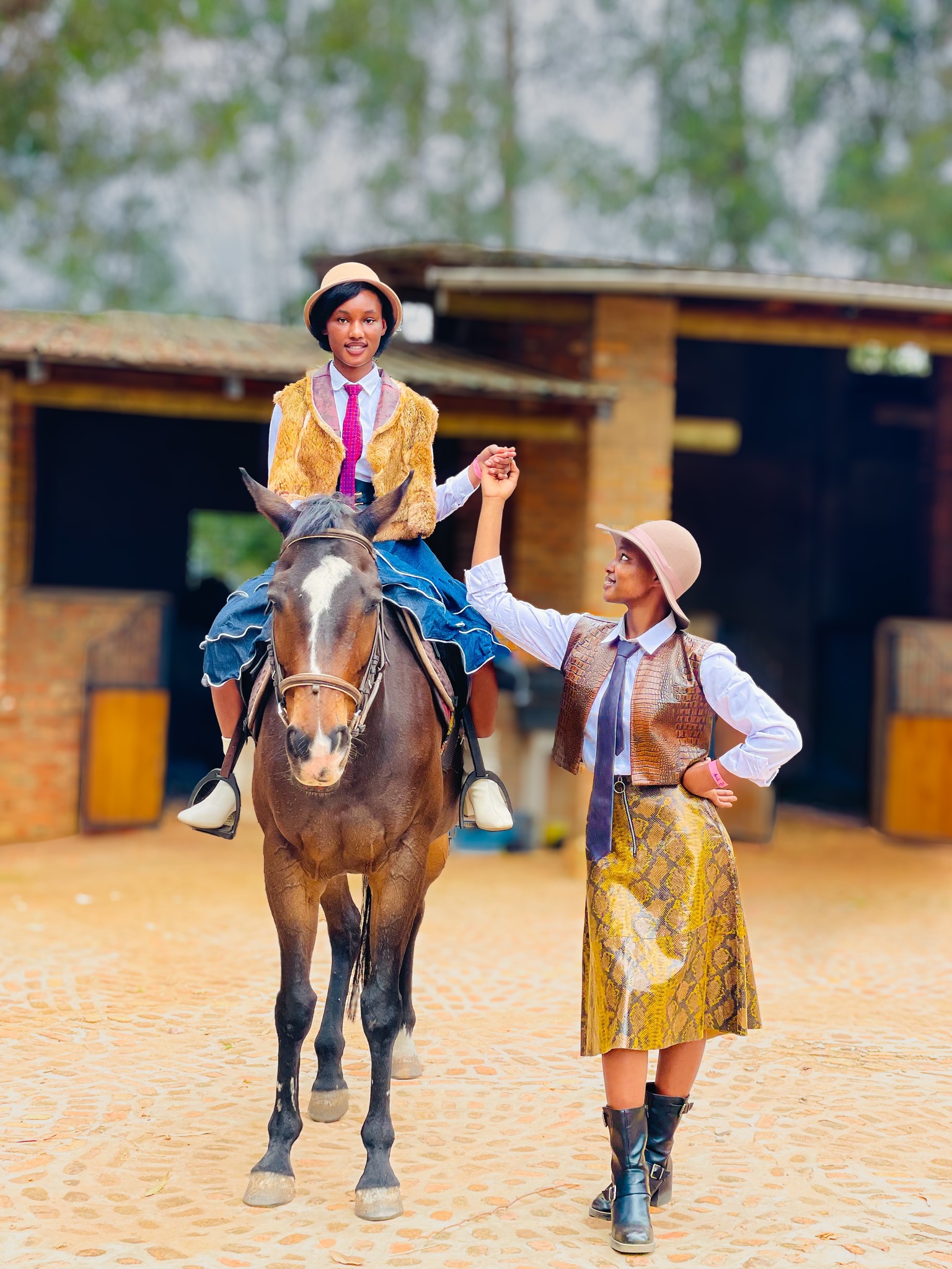 Alicia na Germaine bagaragara bari ku mafarasi, batembera nk’abatsinzi, bigaragaza ishusho y’ubutsinzi n’icyubahiro indirimbo ivuga.