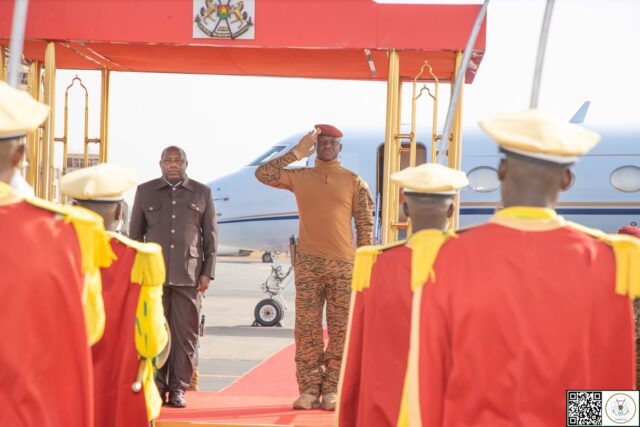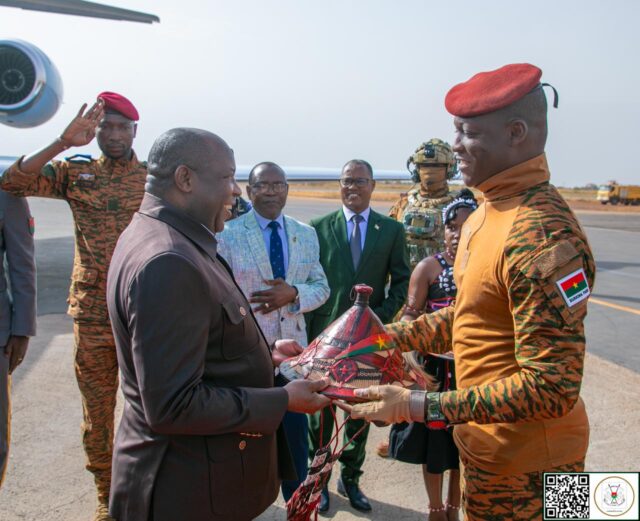 Mu gitondo cyo kuri uyu wa mbere Perezida wa Burkina Faso, Ibrahim Traoré, yakiriye ku kibuga cy’indege mpuzamahanga cya Ouagadougou, Perezida w’u Burundi, Évariste Ndayishimiye, uri no ku buyobozi bw’Umuryango w’Afurika yunze ubumwe